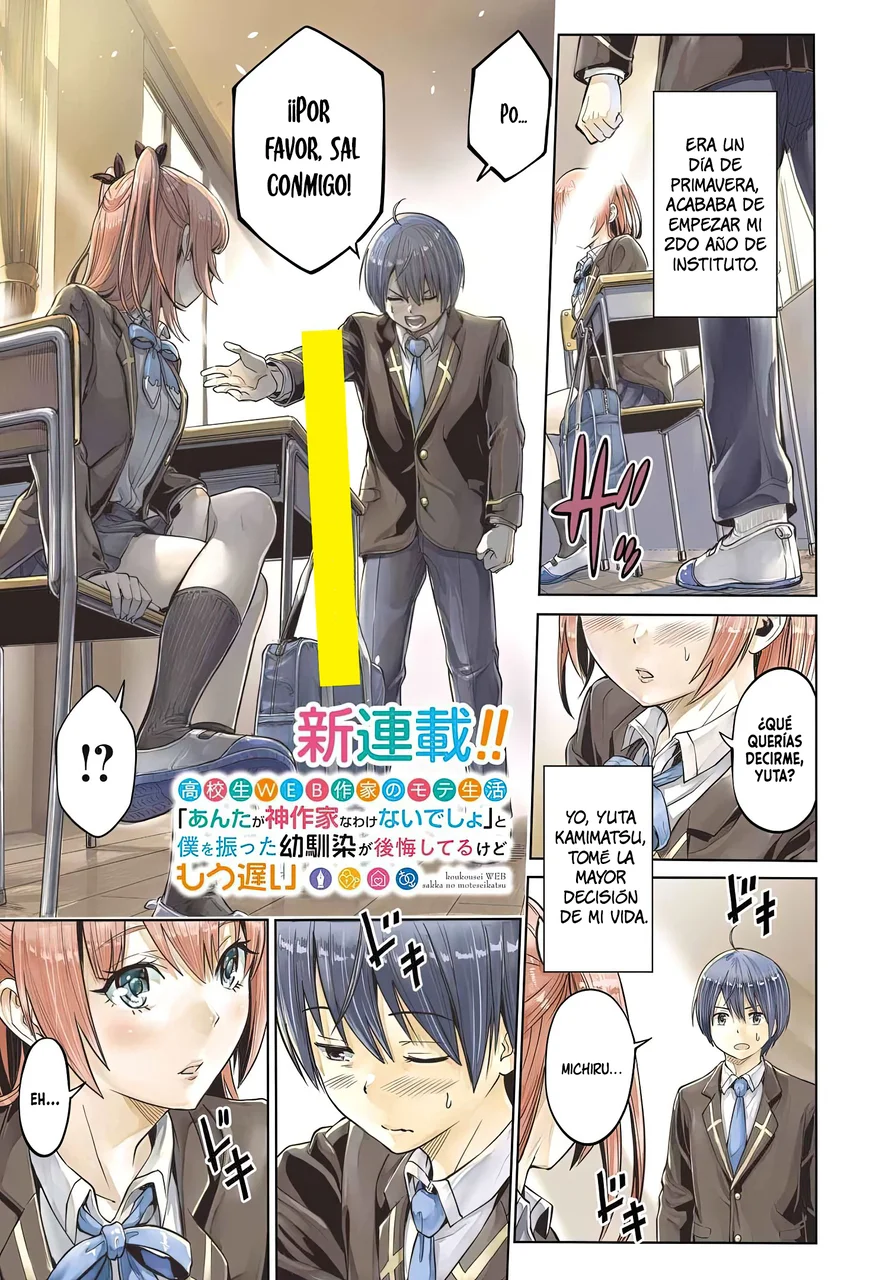 Koukousei WEB Sakka no Mote Seikatsu: “Anta ga Kami Sakka na Wake Nai Deshou” to Boku wo Futta Osanajimi ga Koukai Shiteru kedo Mou Osoi - Capitulo 1