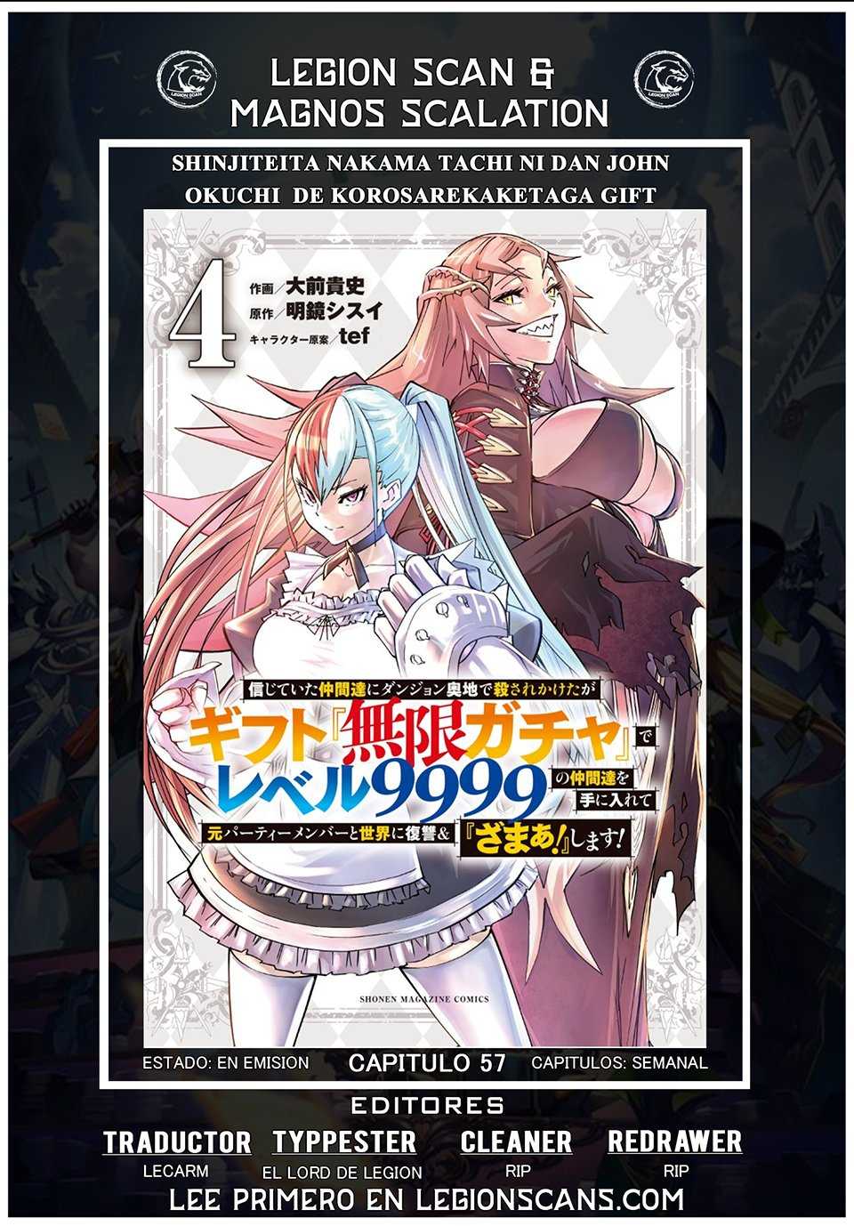 Shinjiteita Nakama Tachi Ni Dungeon Okuchi De Korosare Kaketa ga Gift 『Mugen Gacha』 De Level 9999 No Nakama Tachi Wo Te Ni Irete Moto Party Member To Sekai Ni Fukushu & 『Zamaa!』 Shimasu! - Capitulo 57