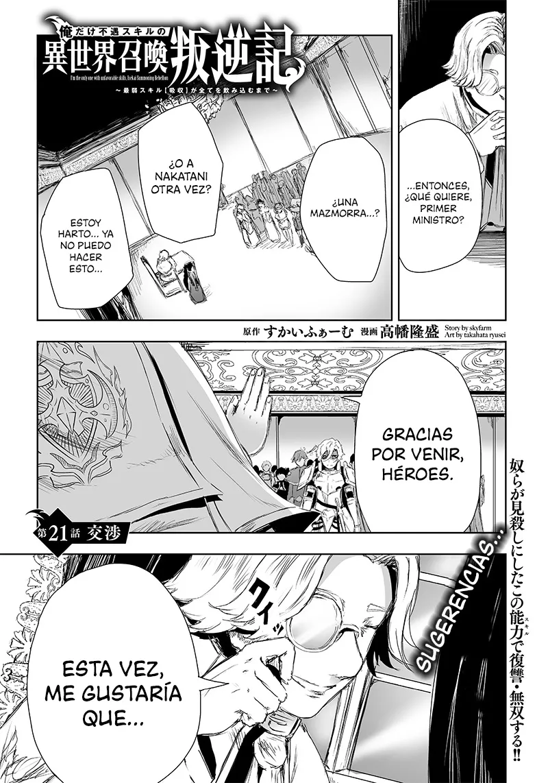 Soy el único con una desafortunada habilidad en otro mundo que Invoca a la Rebelión ~ Hasta que la habilidad más débil [Absorción] se lo trague todo ~ - Capitulo 21